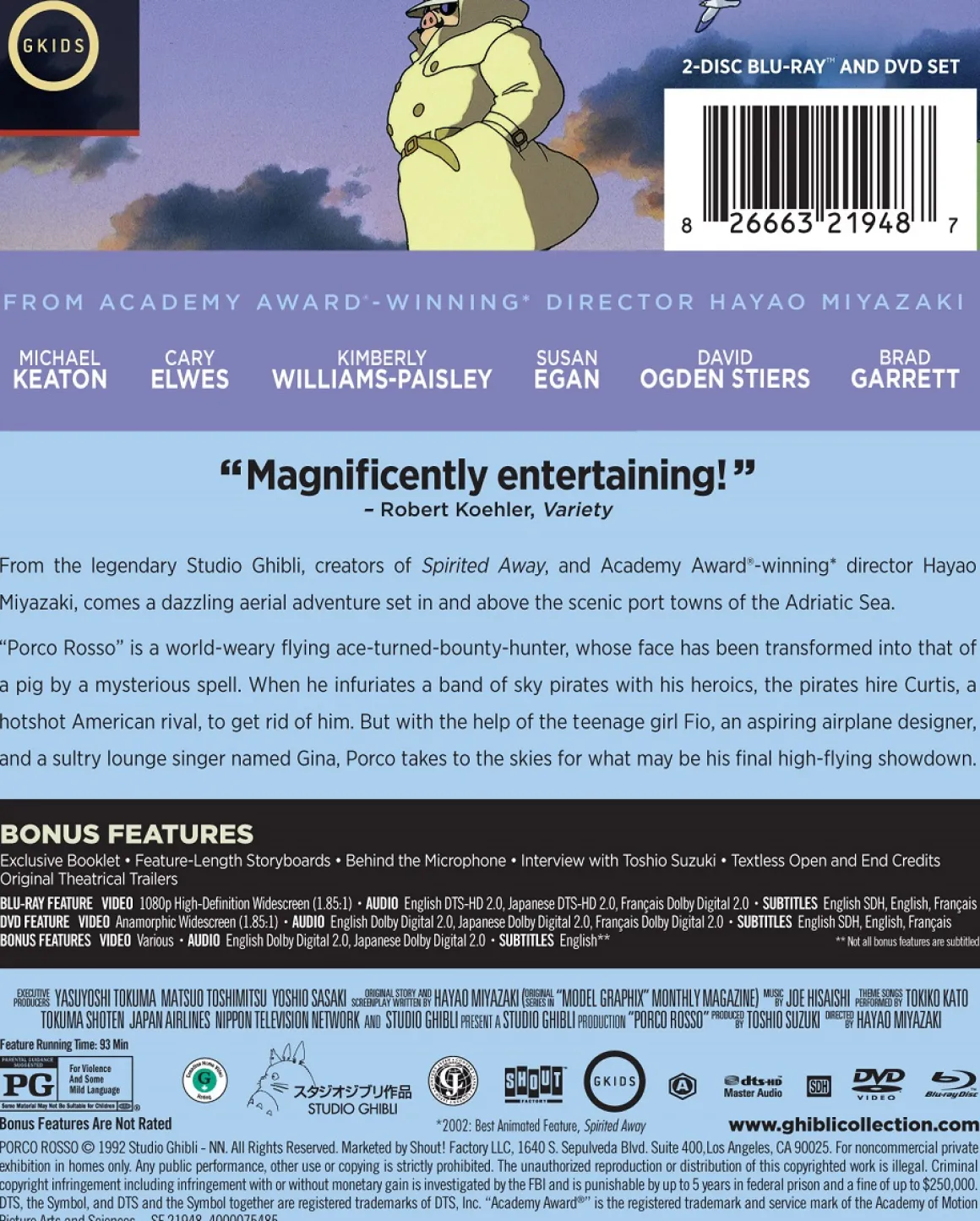 Special Features: Feature-Length Storyboards, Behind the Microphone, Interview with Toshio Suzuki, Textless Open and End Credits, Original Theatrical Trailers.