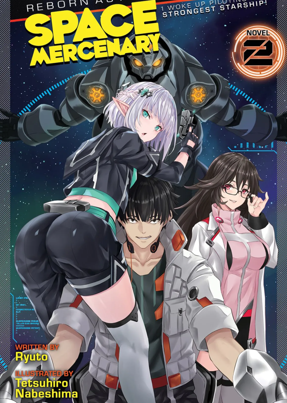 Reborn as a Space Mercenary: I Woke Up Piloting the Strongest Starship! Novel Volume 2 features story by Ryuto and illustrations by Tetsuhiro Nabeshima.