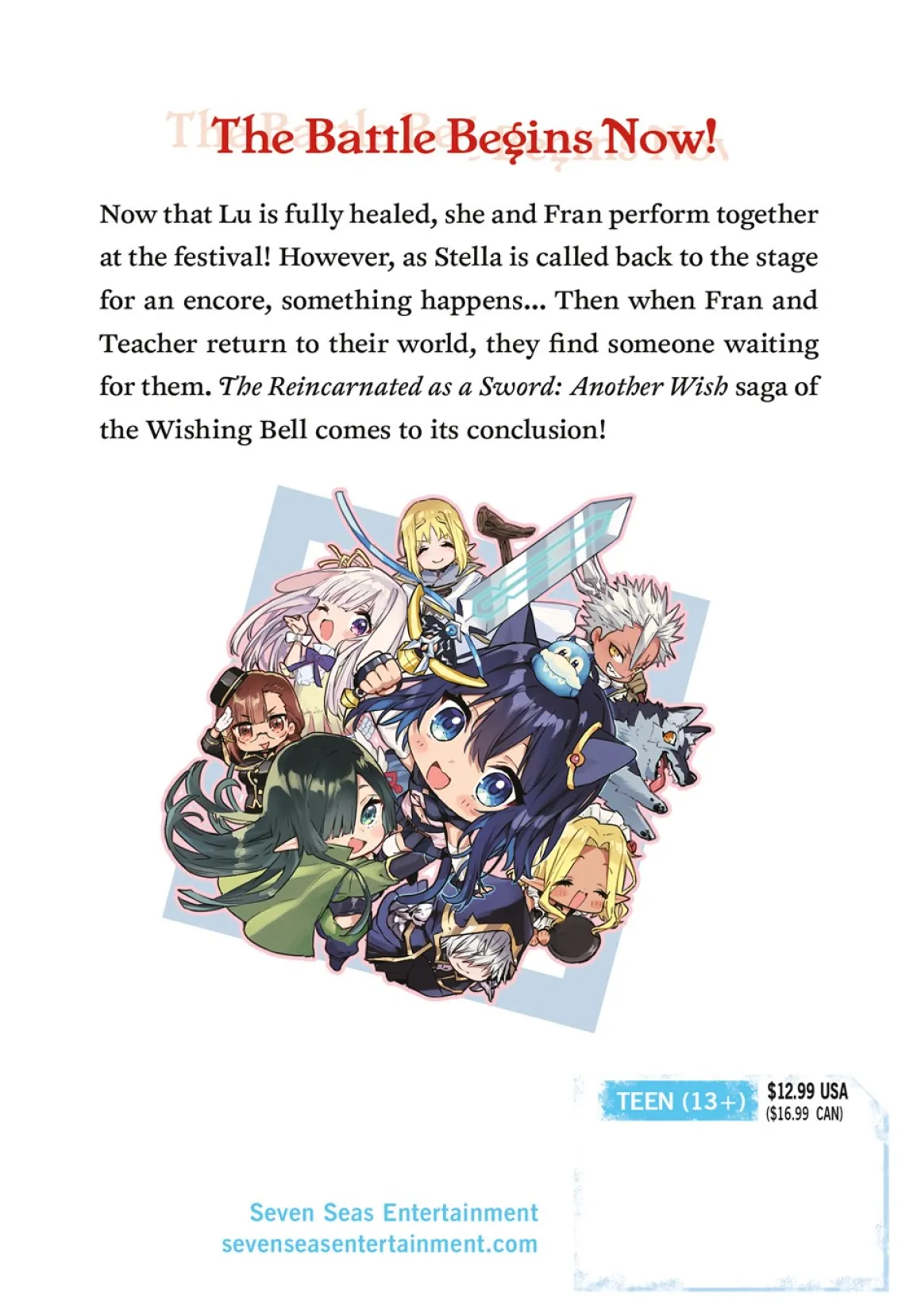 Now that Lu is fully healed, she and Fran perform together at the festival! However, as Stella is called back to the stage for an encore, something happens… Then when Fran and Teacher return to their world, they find someone waiting for them. The Reincarnated as a Sword: Another Wish saga of the Wishing Bell comes to its conclusion!