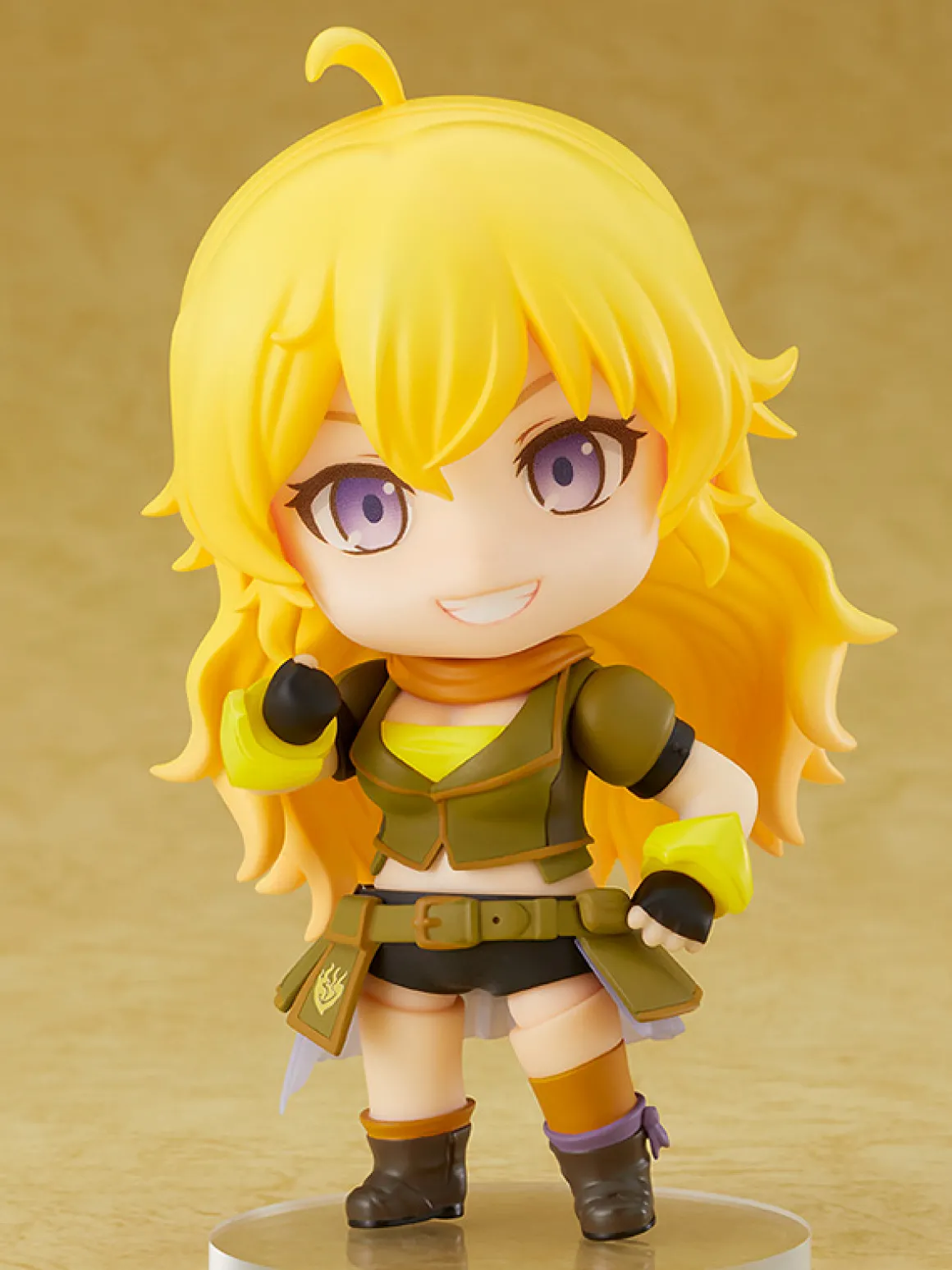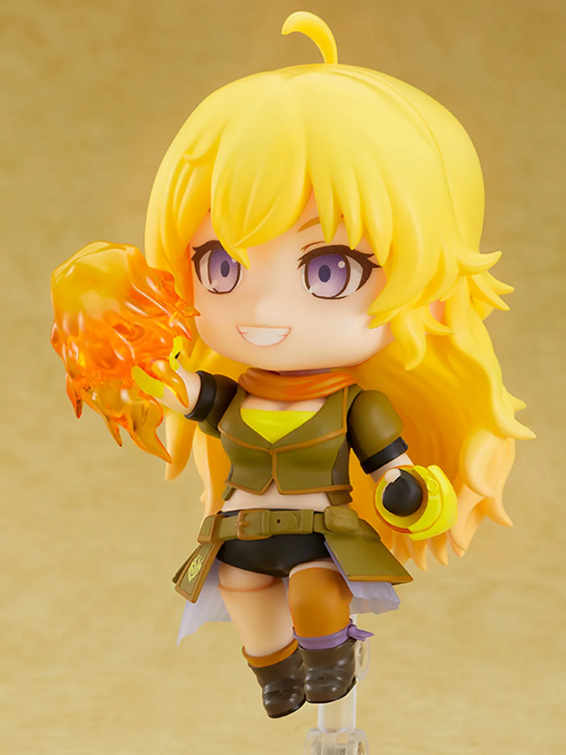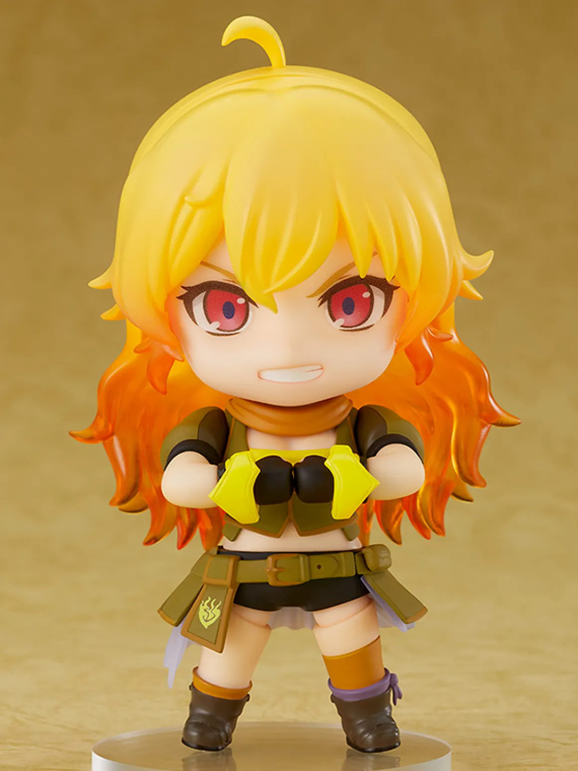 From Rooster Teeth’s hit 3DCG anime “RWBY” comes a Nendoroid of Yang Xiao Long! She comes with two face plates; a wide grin with her usual lilac eyes and a red-eyed angry expression. Her original outfit and both the bracelet and gauntlet forms of Ember Celica have been faithfully recreated in Nendoroid form. The second set of hair parts are also included and have been painted a transparent orange at the ends for a fiery look so that you can display Yang using her Burn semblance. Be sure to add her to your collection and display her with other characters from the RWBY Nendoroid series!