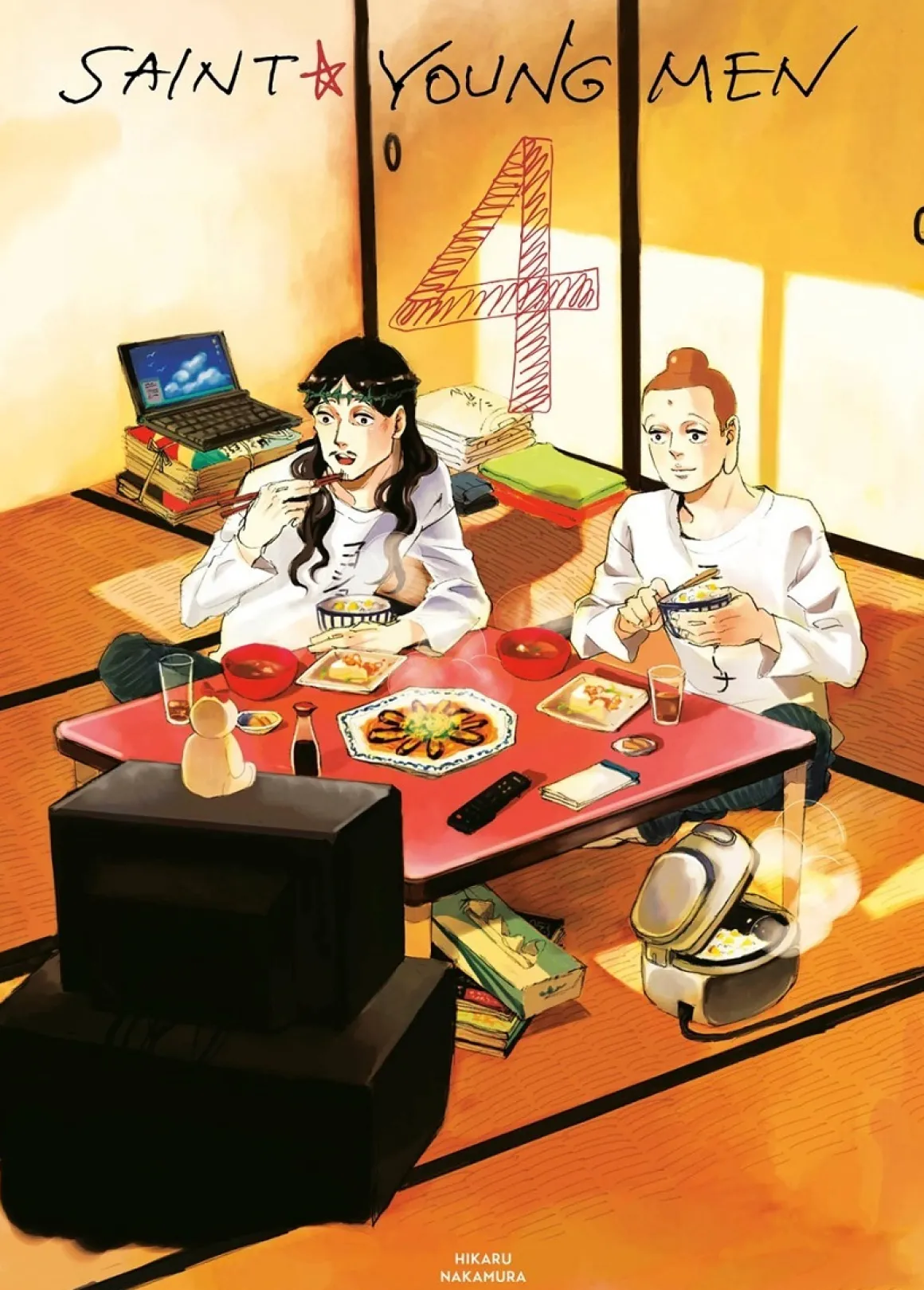 Saint Young Men manga omnibus volume 4 features story and art by Hikaru Nakamura and includes volumes 7-8 in this 2-in-1 Hardcover Edition.
