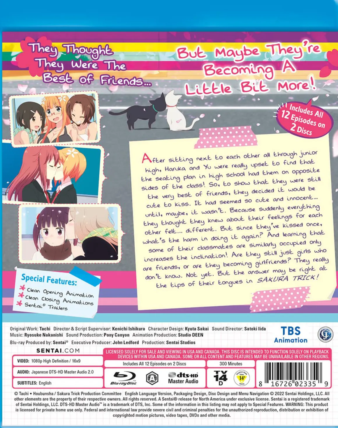 Sakura Trick contains episodes 1-12 of the anime directed by Ken’ichi Ishikura.