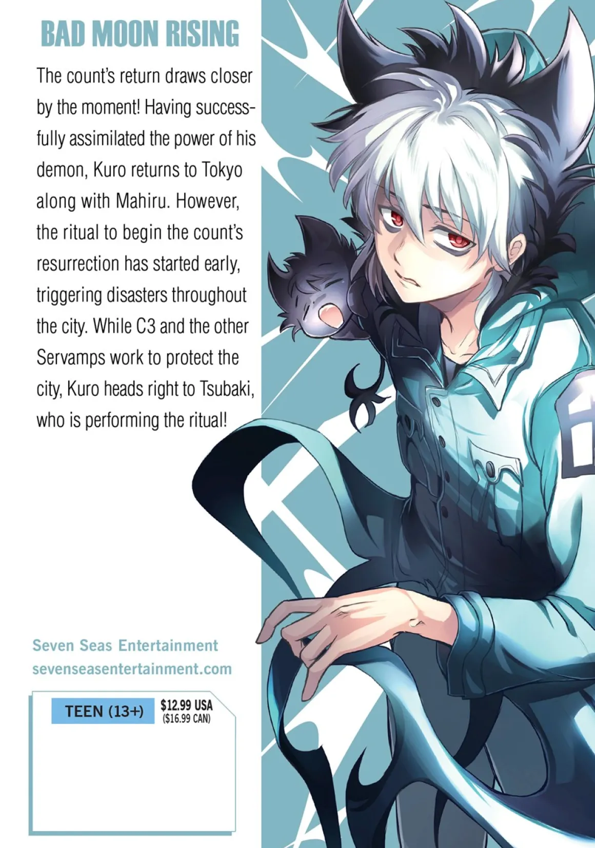 The count’s return draws closer by the moment! Having successfully assimilated the power of his demon, Kuro returns to Tokyo along with Mahiru. However, the ritual to begin the count’s resurrection has started early, triggering disasters throughout the city. While C3 and the other Servamps work to protect the city, Kuro heads right to Tsubaki, who is performing the ritual!
