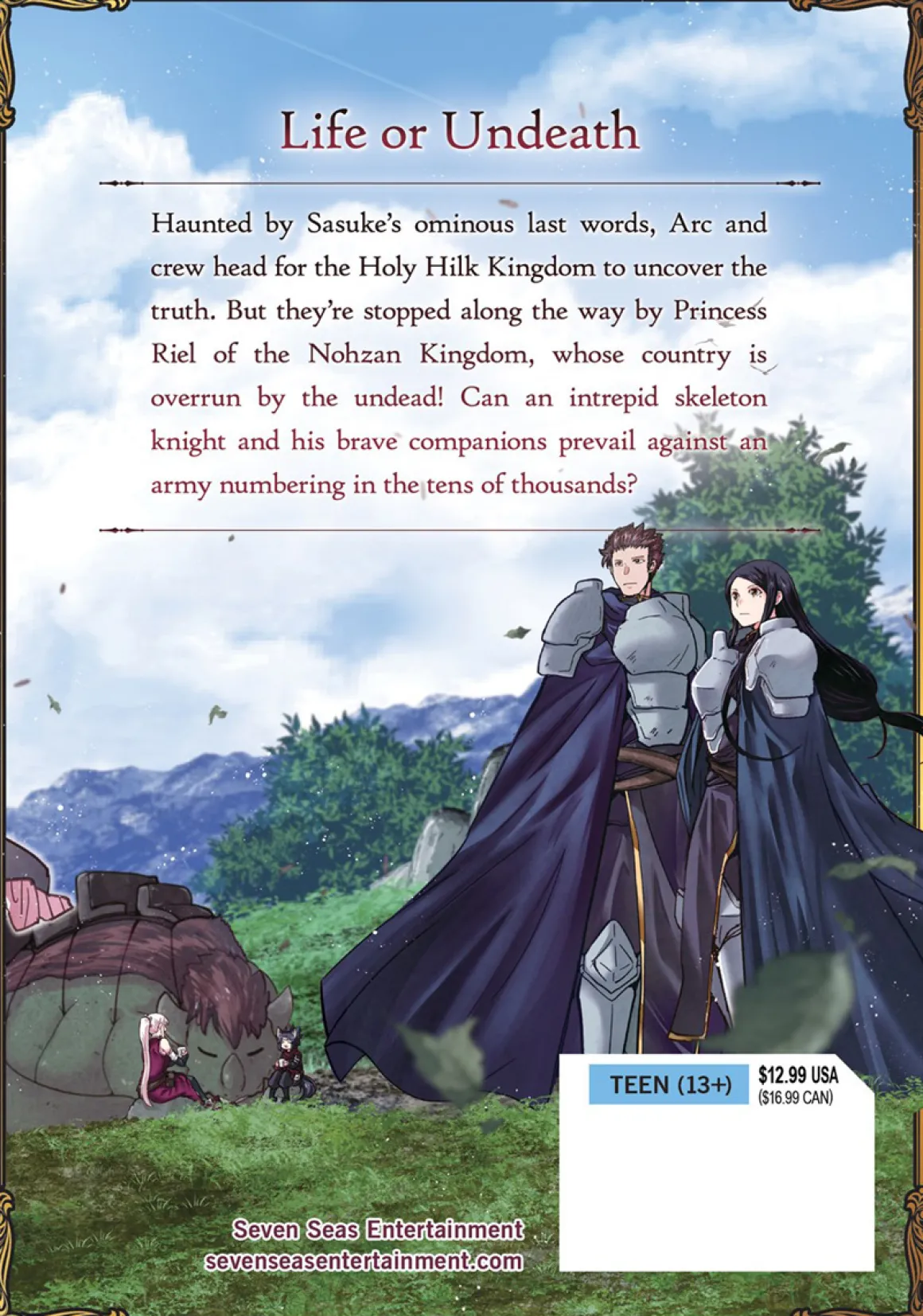 Haunted by Sasuke’s ominous last words, Arc and crew head for the Holy Hilk Kingdom to uncover the truth. But they’re stopped along the way by Princess Riel of the Nohzan Kingdom, whose country is overrun by the undead! Can an intrepid skeleton knight and his brave companions prevail against an army numbering in the tens of thousands?