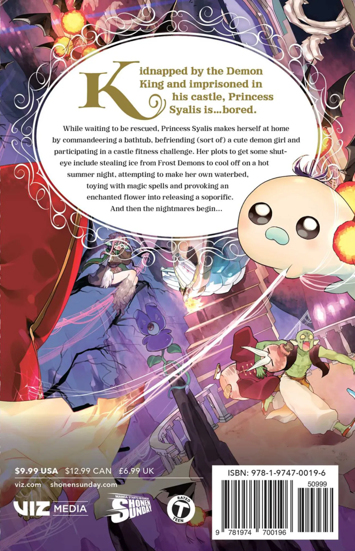 While waiting to be rescued, Princess Syalis makes herself at home by commandeering a bathtub, befriending a girl demon and participating in a castle fitness challenge. Her plots to get some shut-eye include stealing ice from Frost Demons to cool off on a hot summer night, attempting to make her own DIY waterbed, toying with magic spells and provoking an enchanted flower into releasing a soporific. And then the nightmares begin…