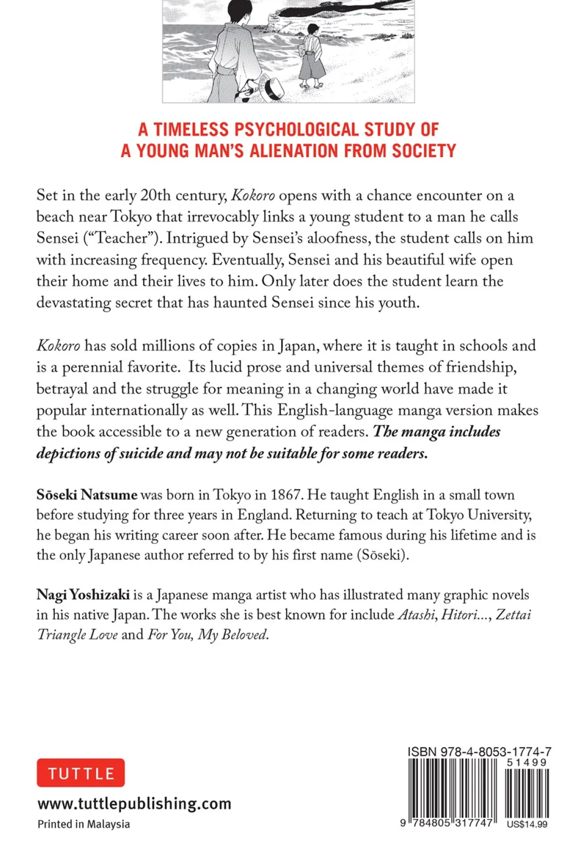 Soseki Natsume’s Kokoro: The Manga Edition: The Heart of Things features story by Soseki Natsume, retold and illustrated by Yoshizaki Nagi.