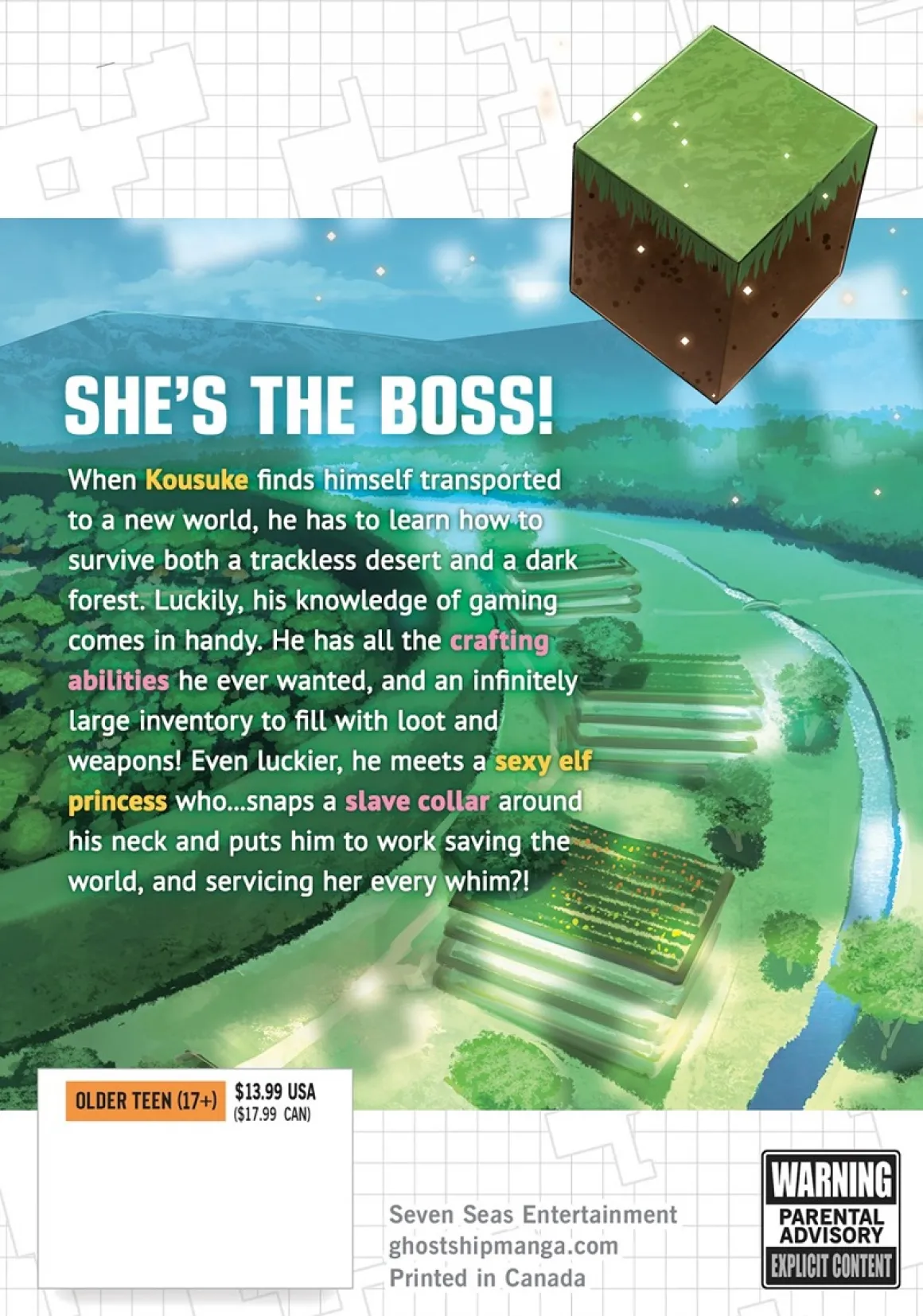 When Kousuke finds himself transported to a new world, he has to learn how to survive both a trackless desert and a dark forest. Luckily, his knowledge of gaming comes in handy. He has all the crafting abilities he ever wanted, and an infinitely large inventory to fill with loot and weapons! Even luckier, he meets a sexy elf princess who…snaps a slave collar around his neck and puts him to work saving the world, and servicing her every whim?!