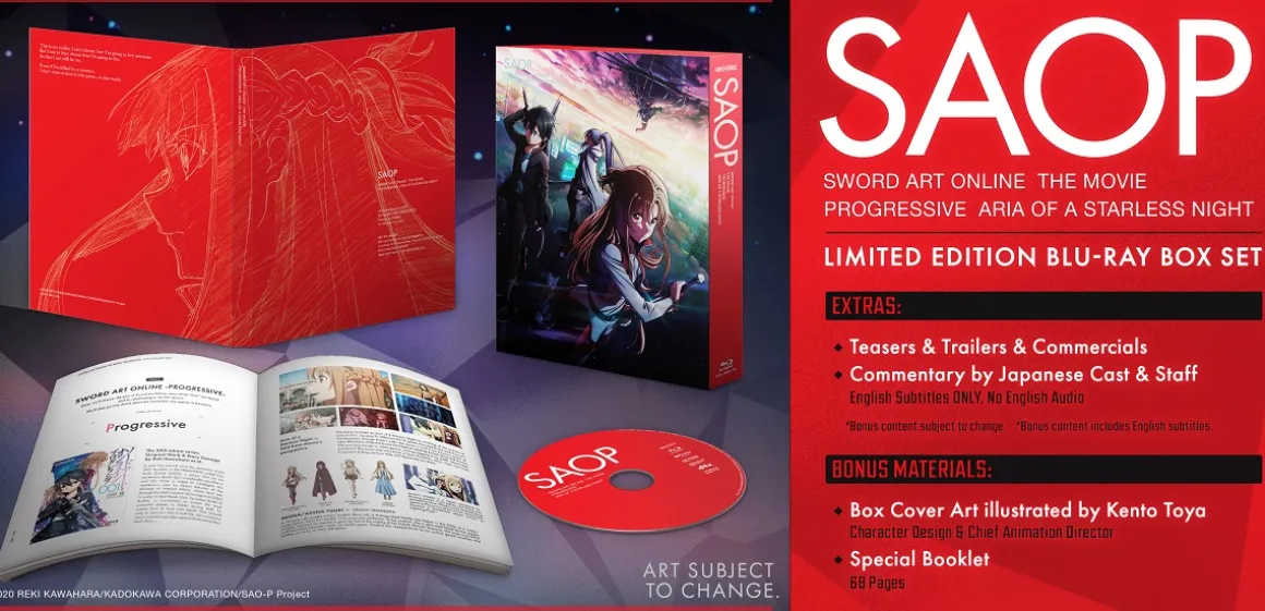 Sword Art Online the Movie -Progressive- Aria of a Starless Night Limited Edition contains the anime movie directed by Ayako Kono plus a Special 68-page Booklet.