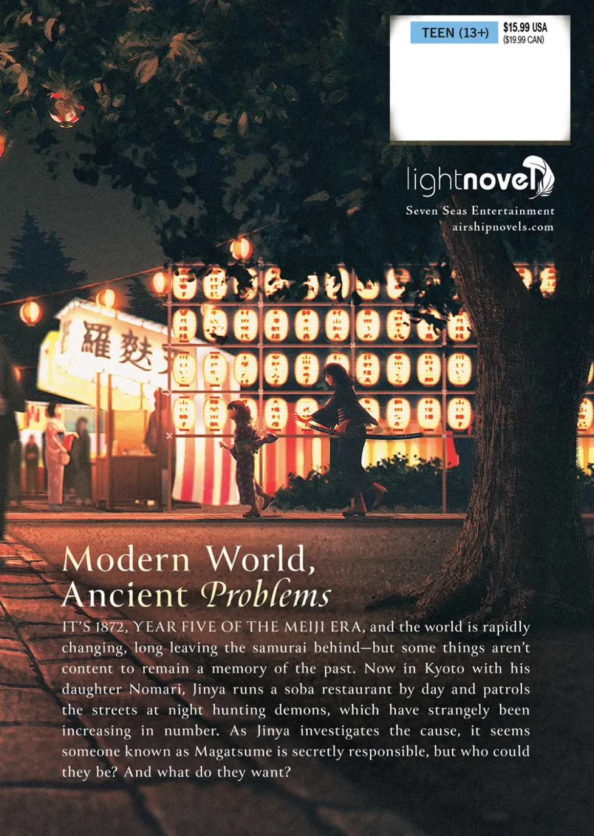 It’s 1872, year five of the Meiji era, and the world is rapidly changing, long leaving the samurai behind—but some things aren’t content to remain a memory of the past. Now in Kyoto with his daughter Nomari, Jinya runs a soba restaurant by day and patrols the streets at night hunting demons, which have strangely been increasing in number. As Jinya investigates the cause, it seems someone known as Magatsume is secretly responsible, but who could they be? And what do they want?