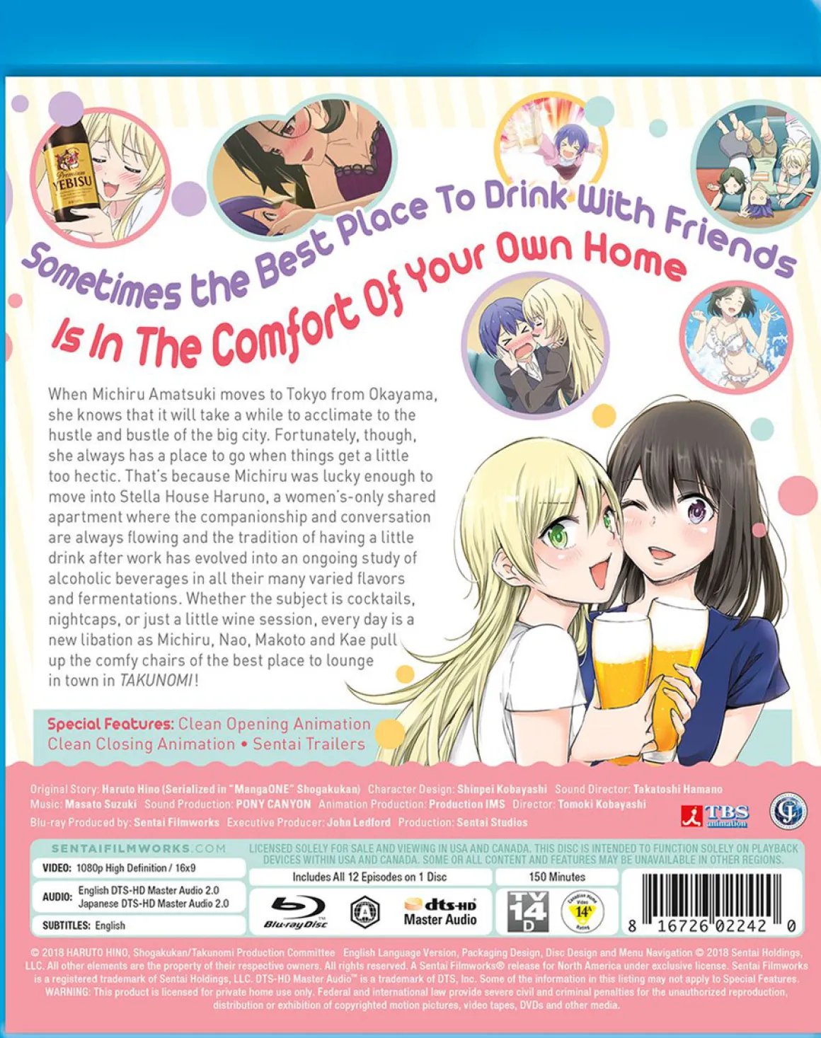 When Michiru Amatsuki moves to Tokyo from Okayama, she knows that it will take a while to acclimate to the hustle and bustle of the big city. Fortunately, though, she always has a place to go when things get a little too hectic. That’s because Michiru was lucky enough to move into Stella House Haruno, a women’s-only shared apartment where the companionship and conversation are always flowing and the tradition of having a little drink after work has evolved into an ongoing study of alcoholic beverages in all their many varied flavors and fermentations. Whether the subject is cocktails, nightcaps, or just a little wine session, every day is a new libation as Michiru, Nao, Makoto and Kae pull up the comfy chairs of the best place to lounge in town!