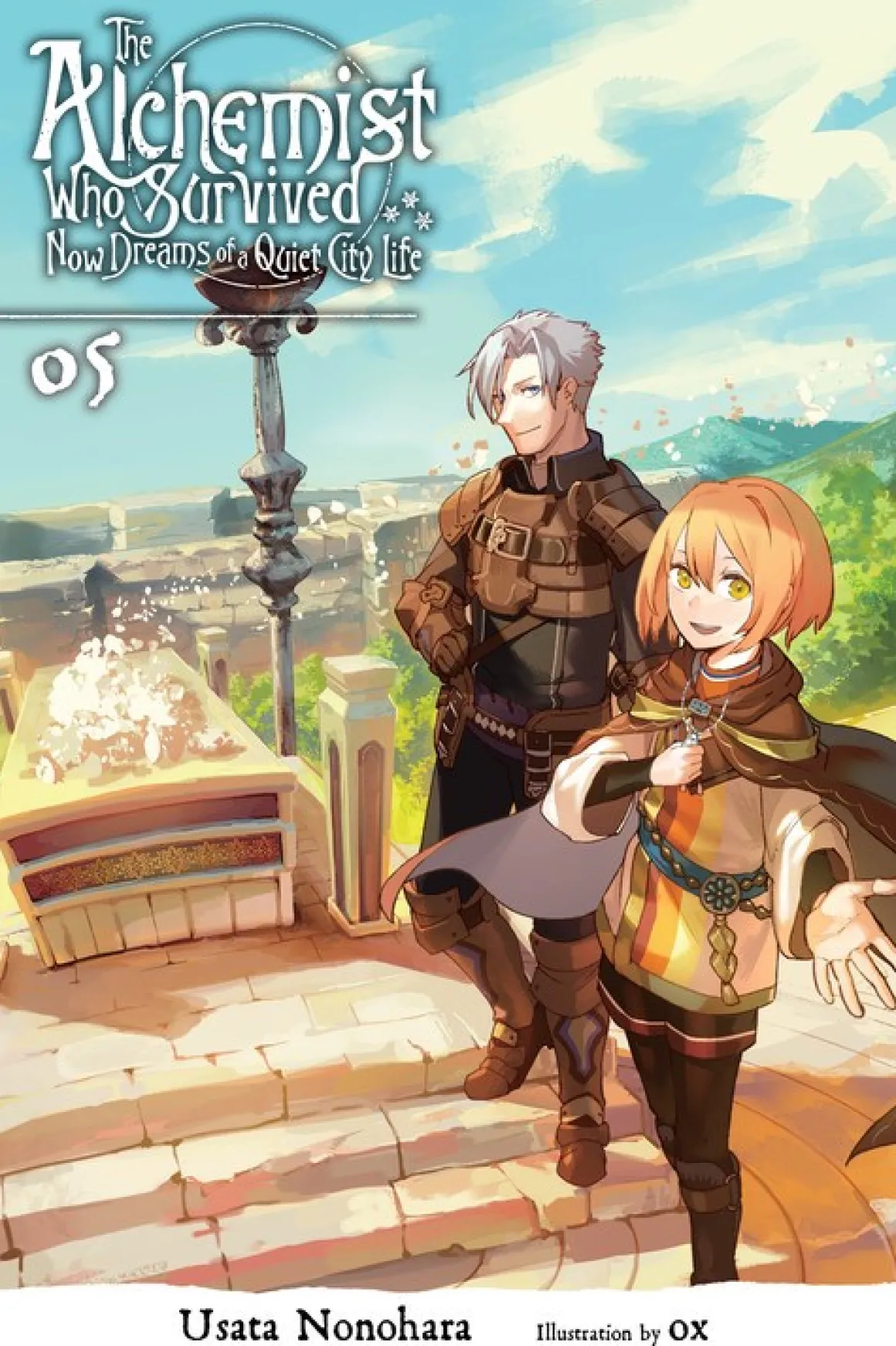 The Alchemist Who Survived Now Dreams of a Quiet City Life Novel Volume 5 was written by Usata Nonohara with illustrations by Ox.