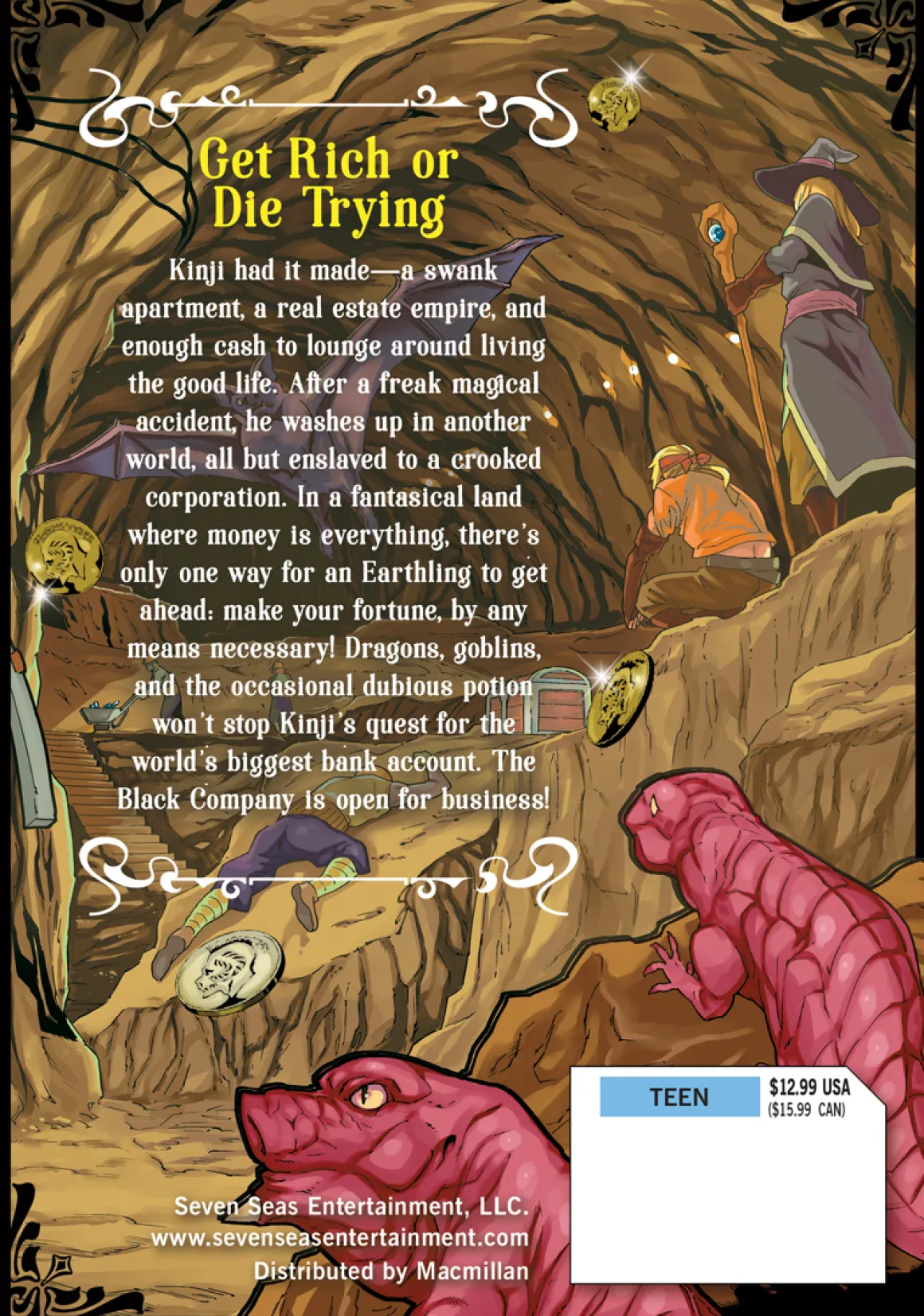 Kinji had it made–a swank apartment, a real estate empire, and enough cash to lounge around living the good life. After a freak magical accident, he washes up in another world, all but enslaved to a crooked corporation. In a fantastical land where money is everything, there’s only one way for an Earthling to get ahead: make your fortune, by any means necessary! Dragons, goblins, and the occasional dubious potion won’t stop Kinji’s quest for the world’s biggest bank account. The Black Company is open for business!
