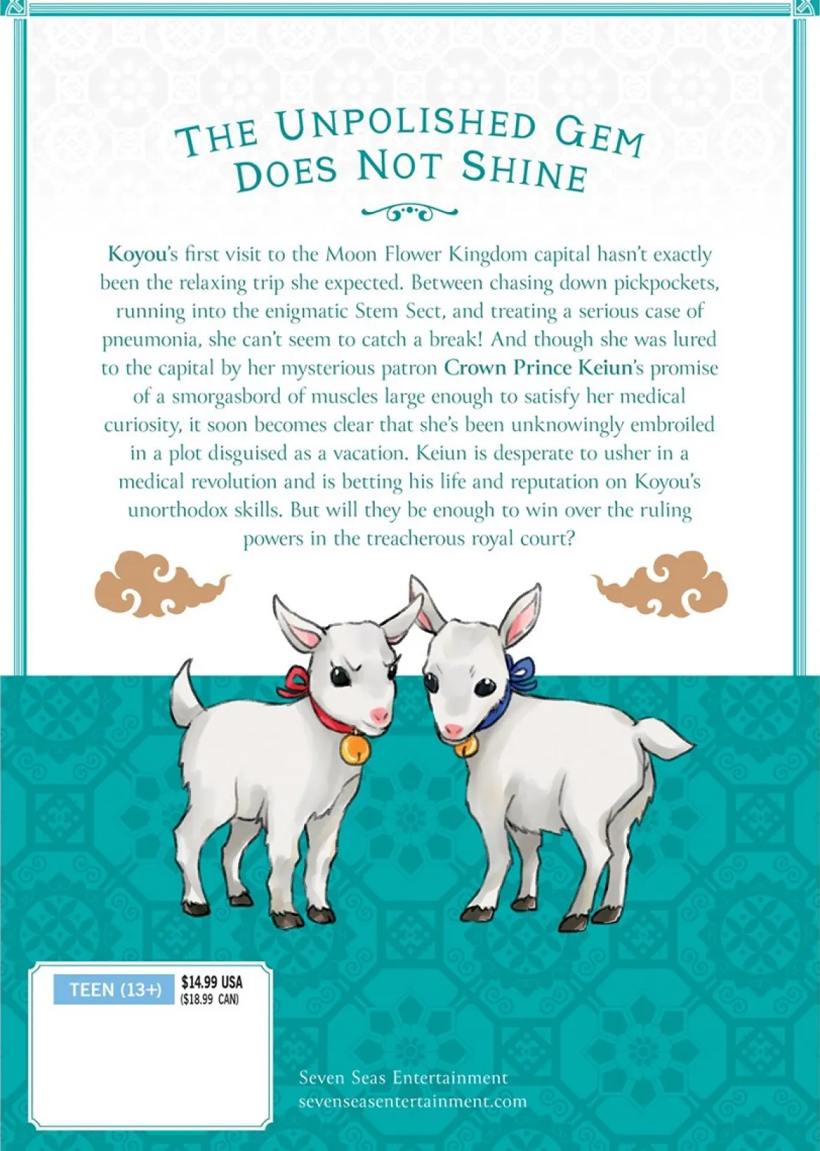 And though she was lured to the capital by her mysterious patron Crown Prince Keiun’s promise of a smorgasbord of muscles large enough to satisfy her medical curiosity, it soon becomes clear that she’s been unknowingly embroiled in a plot disguised as a vacation. Keiun is desperate to usher in a medical revolution and is betting his life and reputation on Koyou’s unorthodox skills. But will they be enough to win over the ruling powers in the treacherous royal court?
