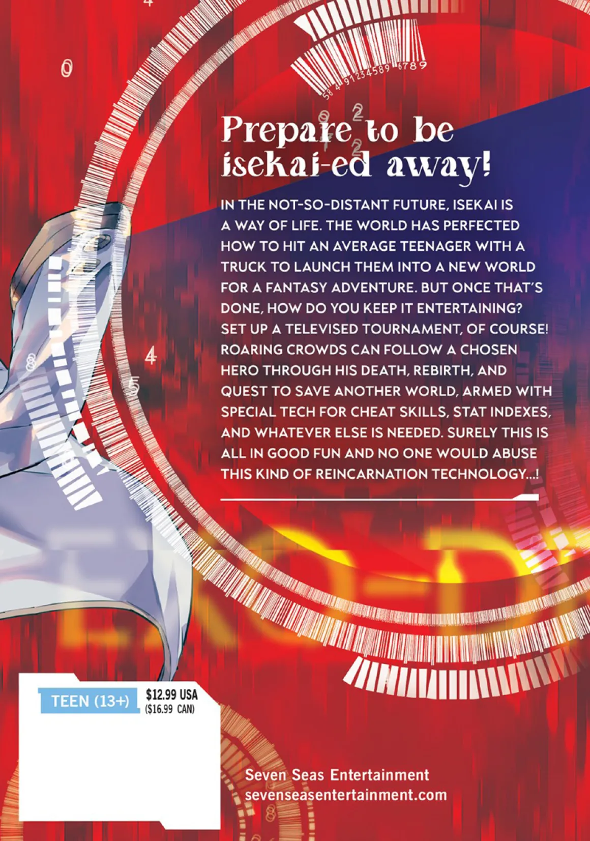 In the not-so-distant future, isekai is a way of life. The world has perfected how to hit an average teenager with a truck to launch them into a new world for a fantasy adventure. But once that’s done, how do you keep it entertaining? Set up a televised tournament, of course! Roaring crowds can follow a chosen Hero through his death, rebirth, and quest to save another world, armed with special tech for cheat skills, stat indexes, and whatever else is needed. Surely this is all in good fun and no one would abuse this kind of reincarnation technology…!