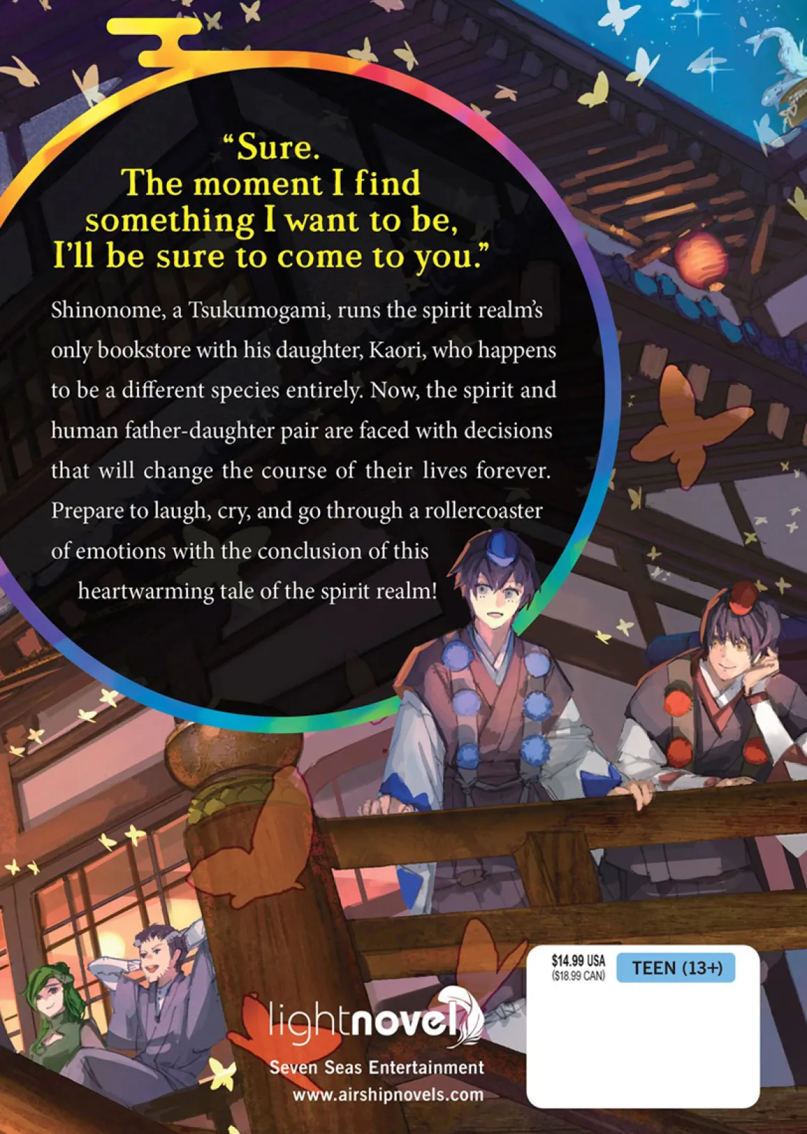 Shinonome, a Tsukumogami, runs the spirit realm’s only bookstore with his daughter, Kaori, who happens to be a different species entirely. Now, the spirit and human father-daughter pair are faced with decisions that will change the course of their lives forever. Prepare to laugh, cry, and go through a rollercoaster of emotions with the conclusion of this heartwarming tale of the spirit realm!