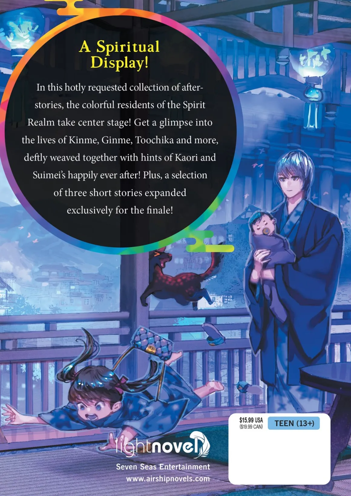 In this hotly-requested collection of after-stories, the colorful residents of the Spirit Realm take center stage! Get a glimpse into the lives of Kinme, Ginme, Toochika and more, deftly weaved together with hints of Kaori and Suimei’s happily ever after! Plus, a selection of three short stories expanded exclusively for the finale!