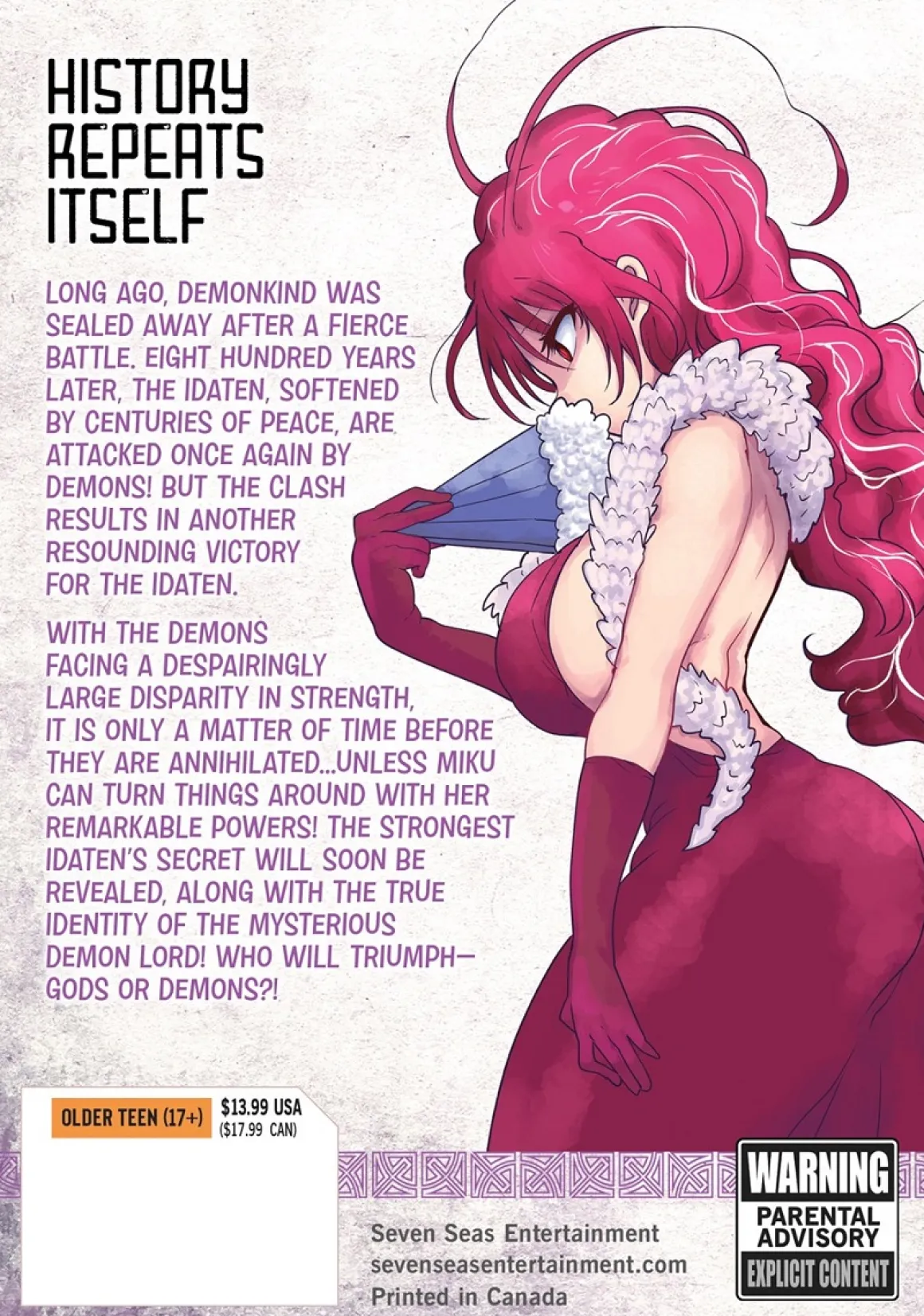 With the demons facing a despairingly large disparity in strength, it is only a matter of time before they are annihilated…unless Miku can turn things around with her remarkable powers! The strongest Idaten’s secret will soon be revealed, along with the true identity of the mysterious Demon Lord! Who will triumph—gods or demons?!