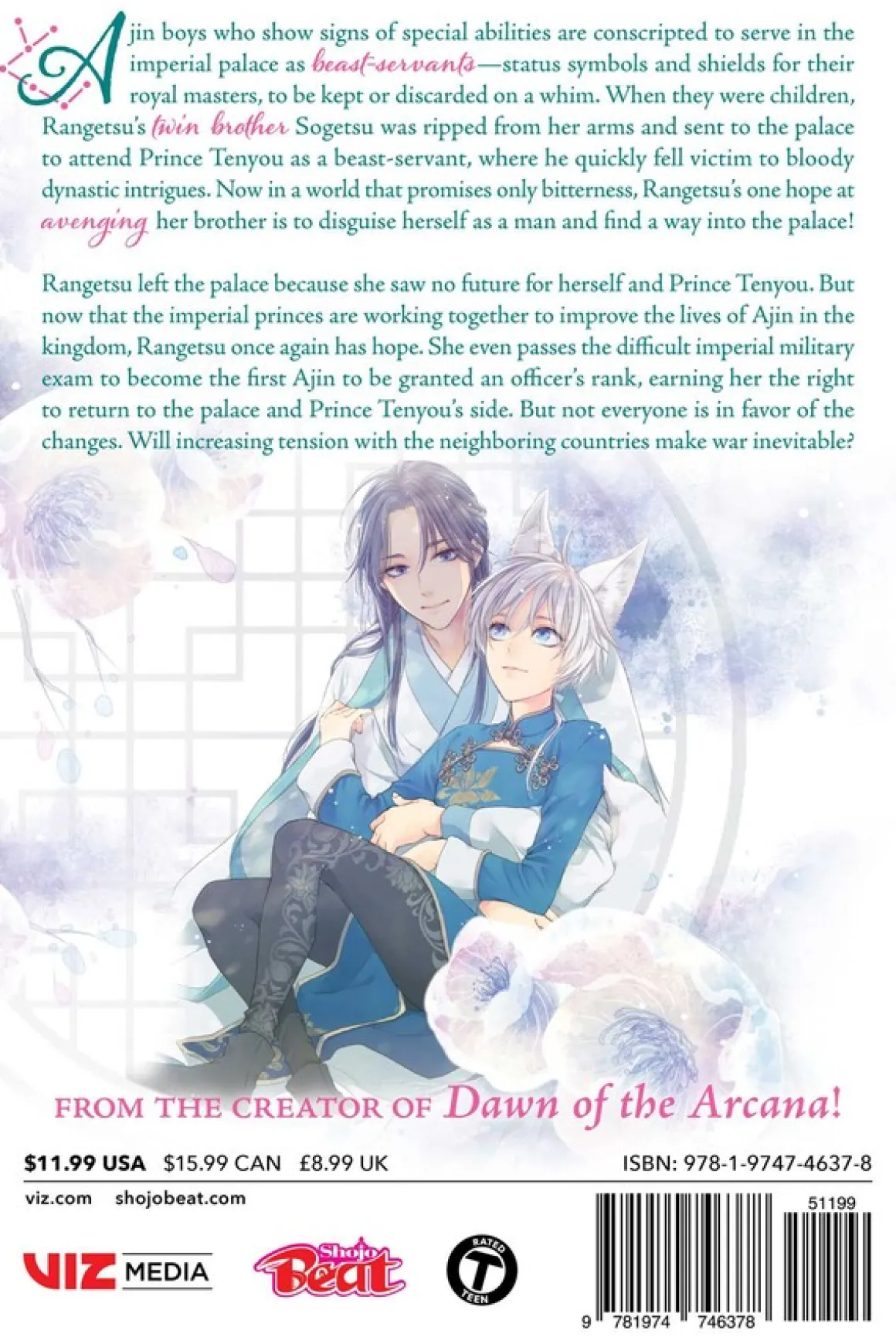 Rangetsu left the palace because she saw no future for herself and Prince Tenyou. But now that the imperial princes are working together to improve the lives of Ajin in the kingdom, Rangetsu once again has hope. She even passes the difficult imperial military exam to become the first Ajin to be granted an officer’s rank, earning her the right to return to the palace and Prince Tenyou’s side. But not everyone is in favor of the changes. Will increasing tension with the neighboring countries make war inevitable?