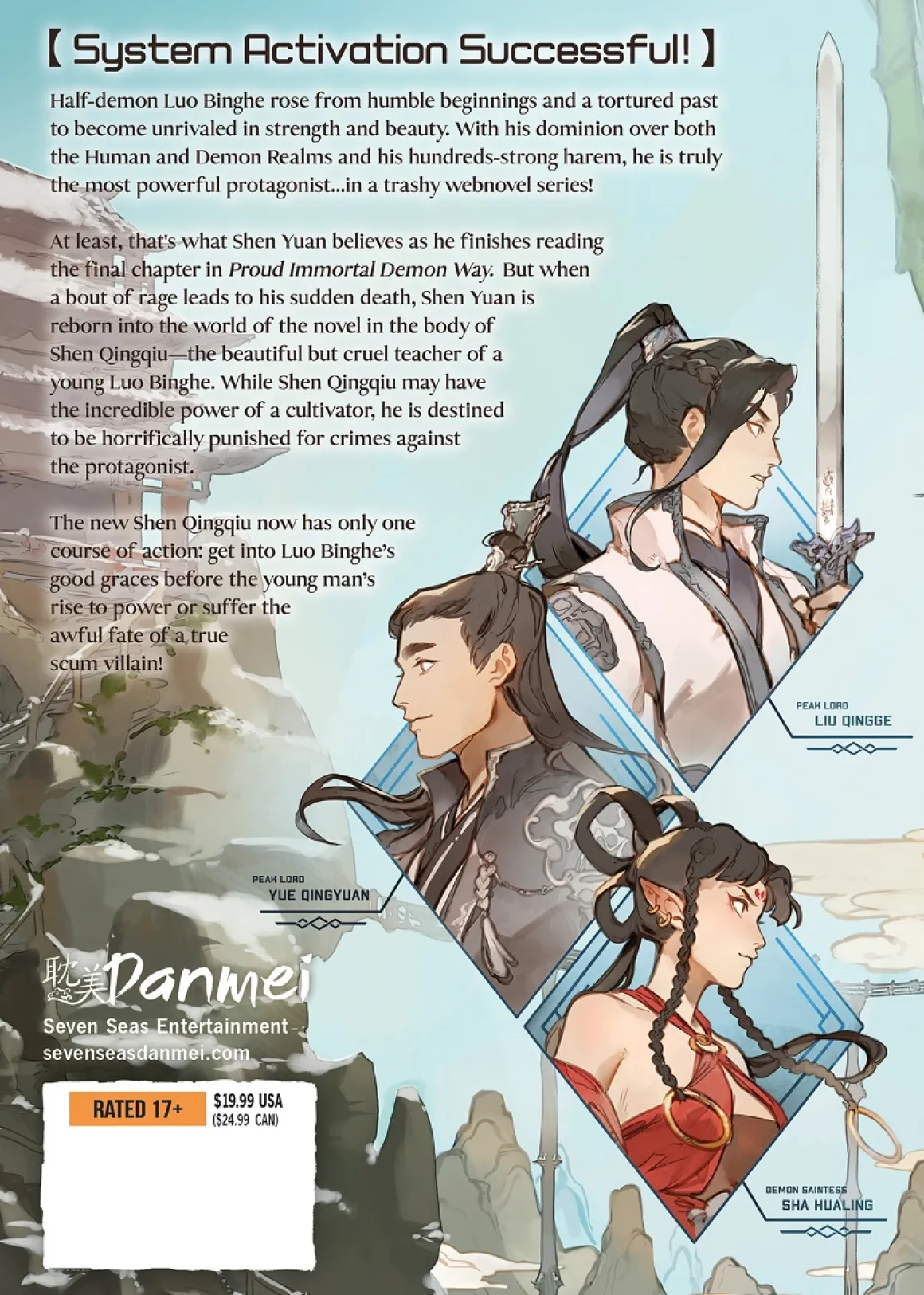 At least, that’s what Shen Yuan, online alias “Peerless Cucumber,” believes as he finishes reading the final chapter in Proud Immortal Demon Way. But when a combination of rage and a poor meal choice leads to his death, Shen Yuan finds himself reborn into the world of the web novel, in the body of Shen Qingqiu—the beautiful but cruel teacher to a young Luo Binghe.