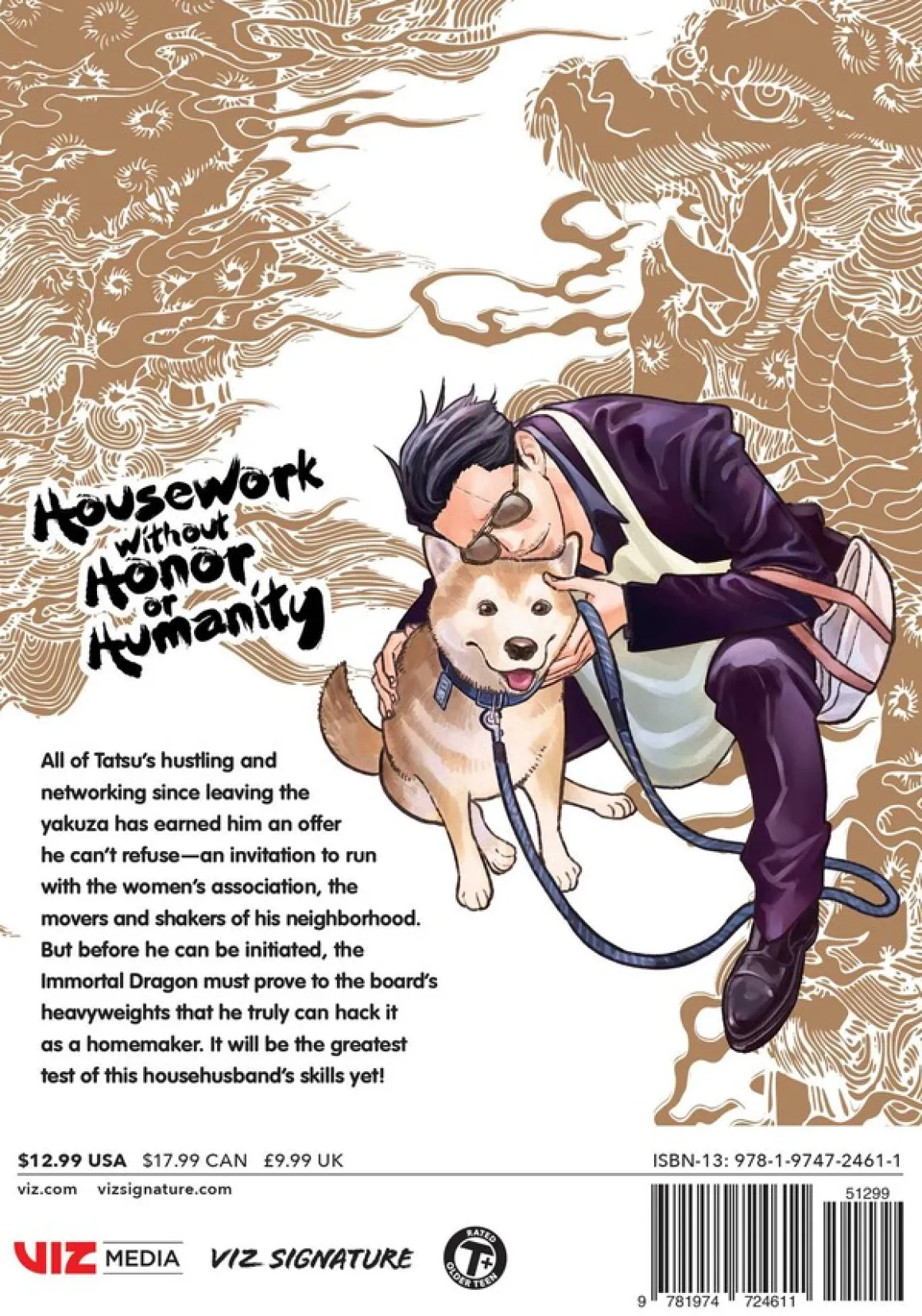 All of Tatsu’s hustling and networking since leaving the yakuza has earned him an offer he can’t refuse—an invitation to run with the women’s association, the movers and shakers of his neighborhood. Before he can be initiated, though, the Immortal Dragon must prove to the board’s heavyweights that he truly can hack it as a homemaker. It will be the greatest test of this househusband’s skills yet!