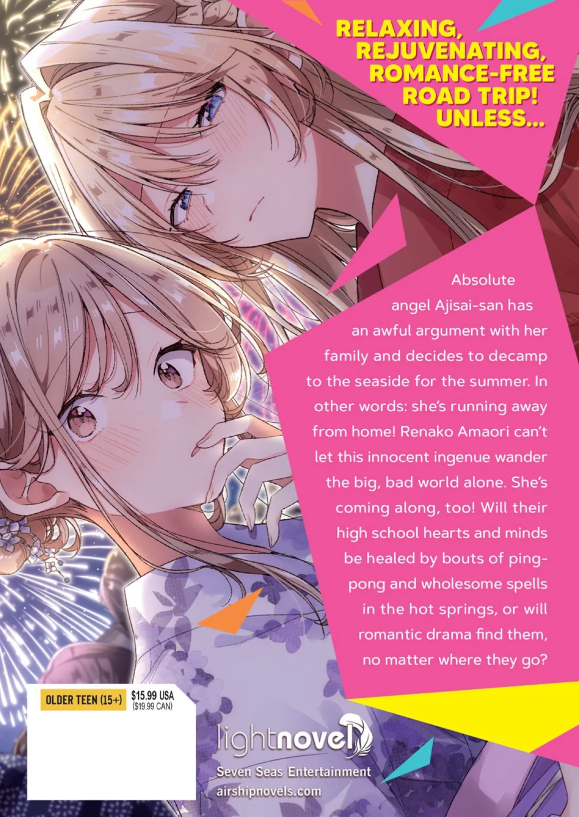 Absolute angel Ajisai-san has an awful argument with her family and decides to decamp to the seaside for the summer. In other words: she’s running away from home! Renako Amaori can’t let this innocent ingenue wander the big, bad world alone. She’s coming along, too! Will their high school hearts and minds be healed by bouts of ping-pong and wholesome spells in the hot springs, or will romantic drama find them, no matter where they go?