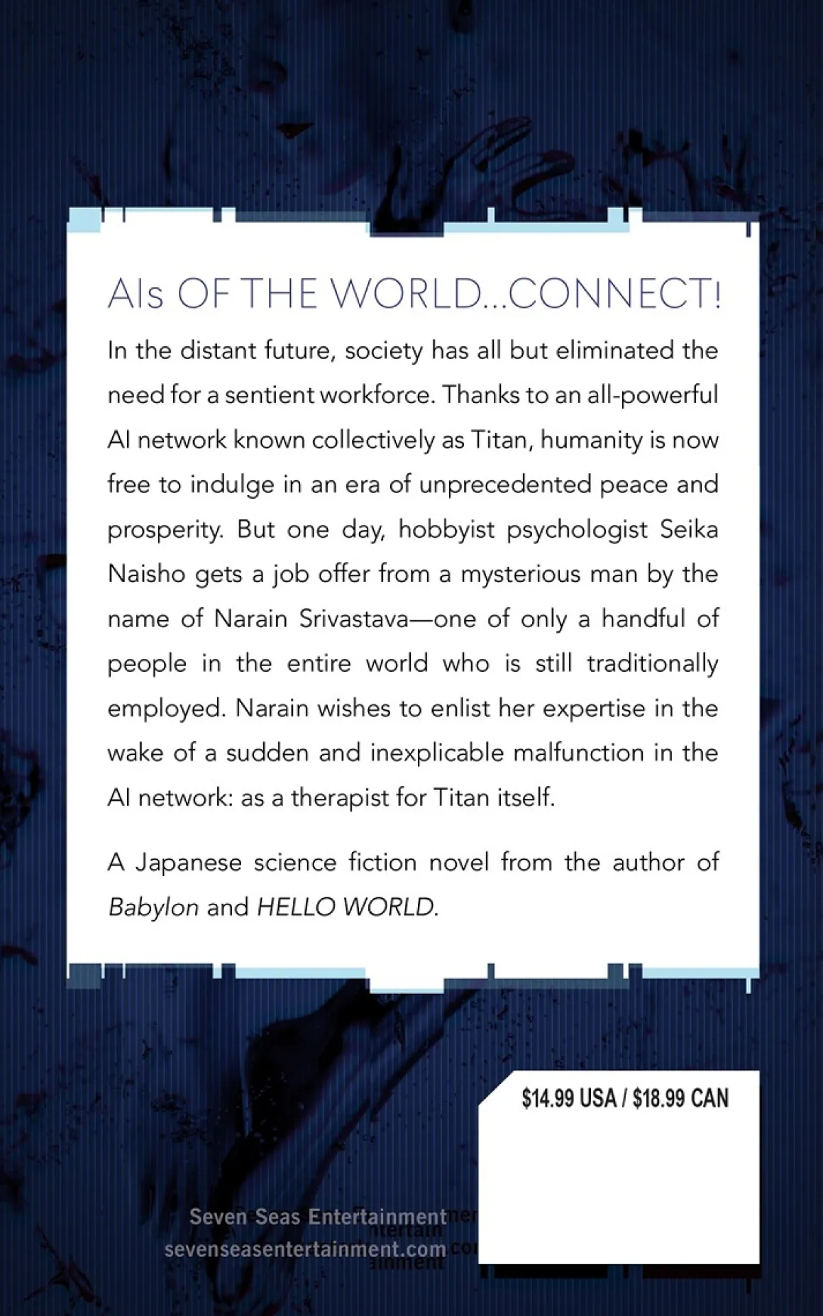 But one day, hobbyist psychologist Seika Naisho gets a job offer from a mysterious man by the name of Narain Srivastava–one of only a handful of people in the entire world who is still traditionally employed. He wishes to enlist Seika’s expertise in the wake of a sudden and inexplicable malfunction in the AI network: as a therapist for Titan itself.
