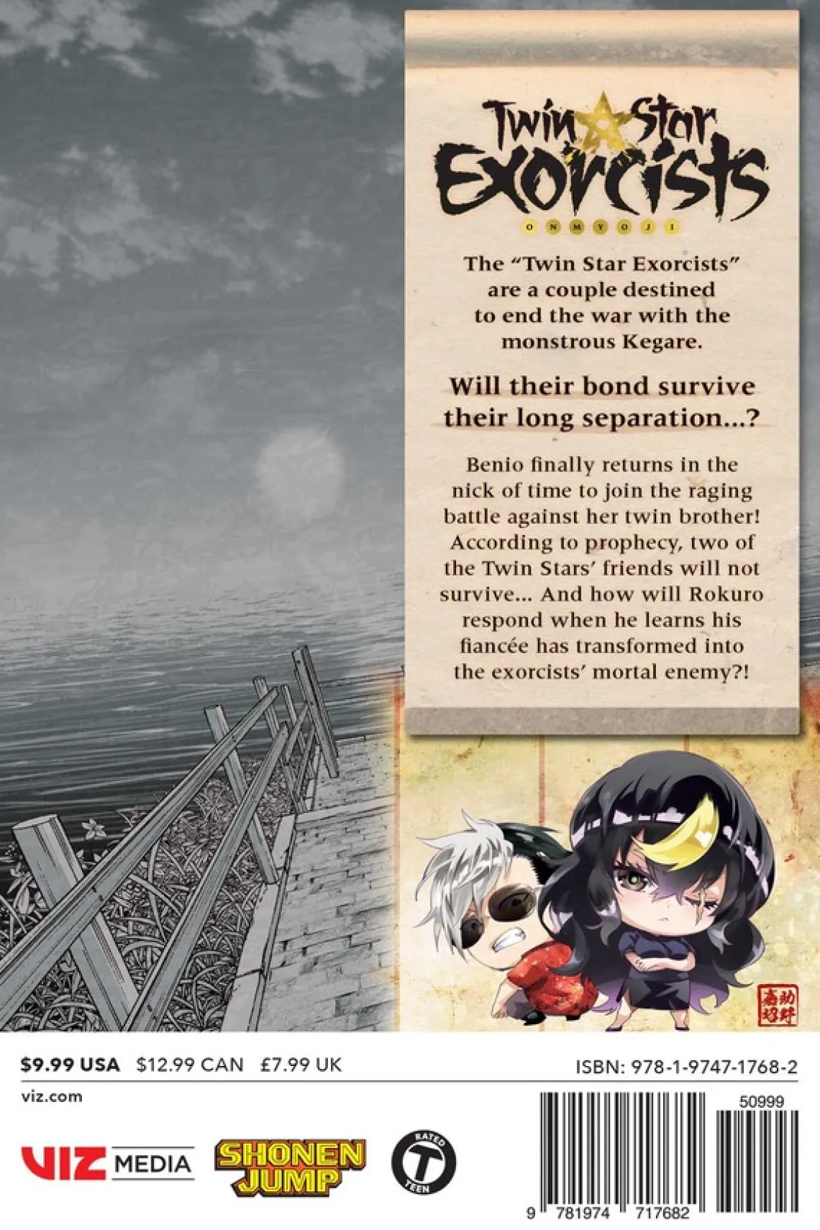 Benio finally returns in the nick of time to join the raging battle against her twin brother! According to prophecy, two of the Twin Stars’ friends will not survive… And how will Rokuro respond when he learns his fiancée has transformed into the exorcists’ mortal enemy?!