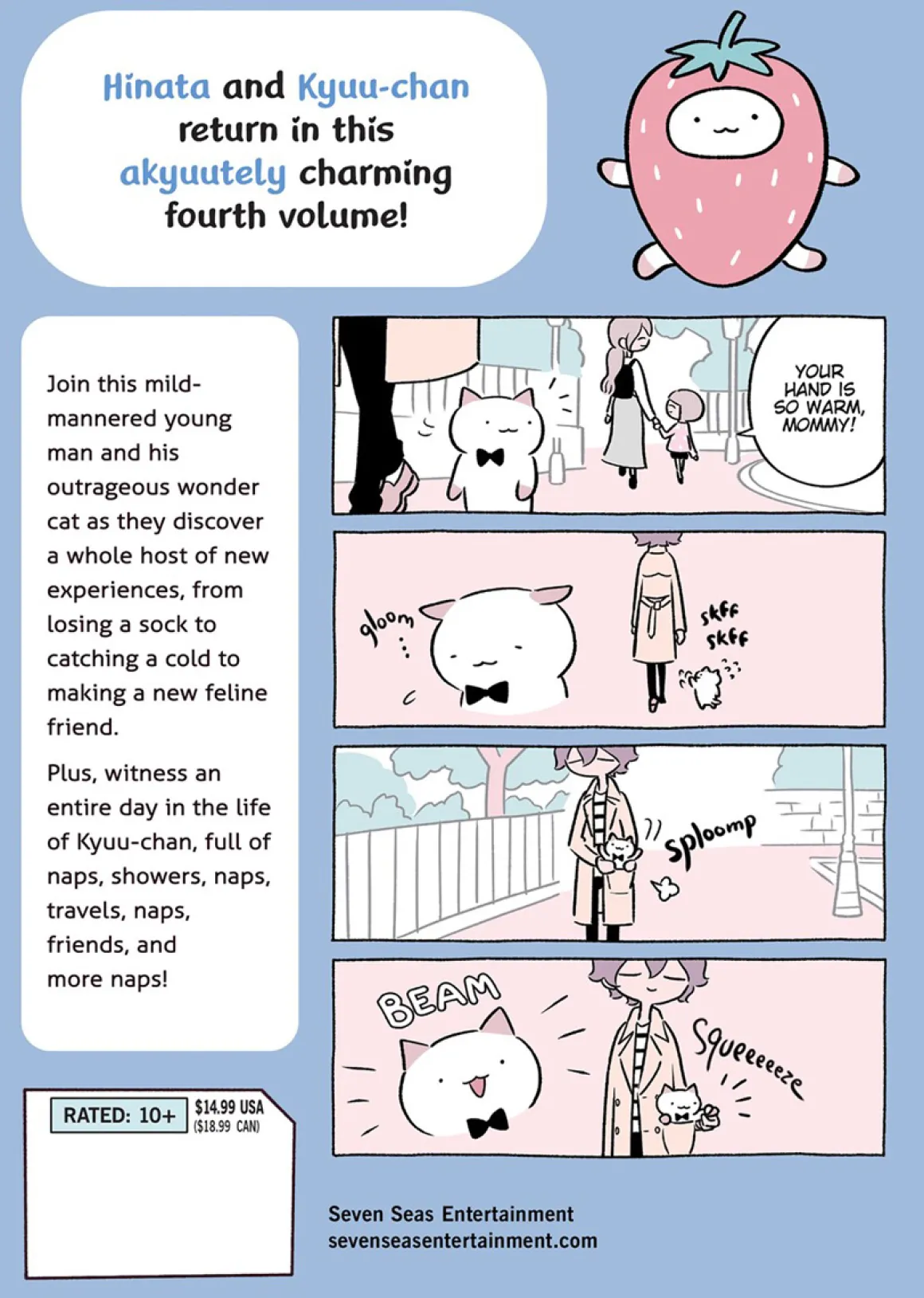 Plus, witness an entire day in the life of Kyuu-chan, full of naps, showers, naps, travels, naps, friends, and more naps!