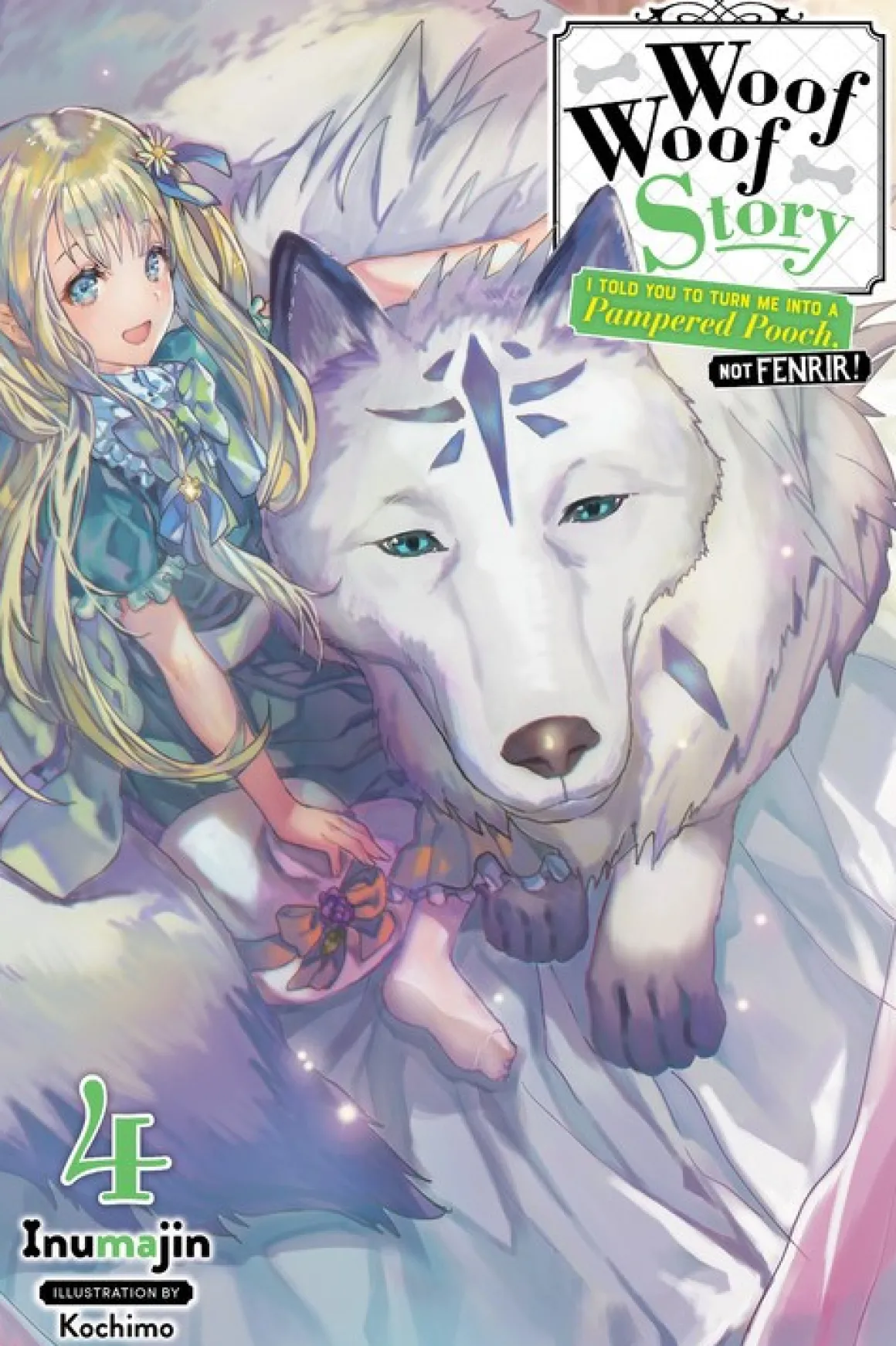 Woof Woof Story I Told You to Turn Me Into a Pampered Pooch, Not Fenrir! Novel Volume 4 was written by Inumajin with illustrations by Kochimo.